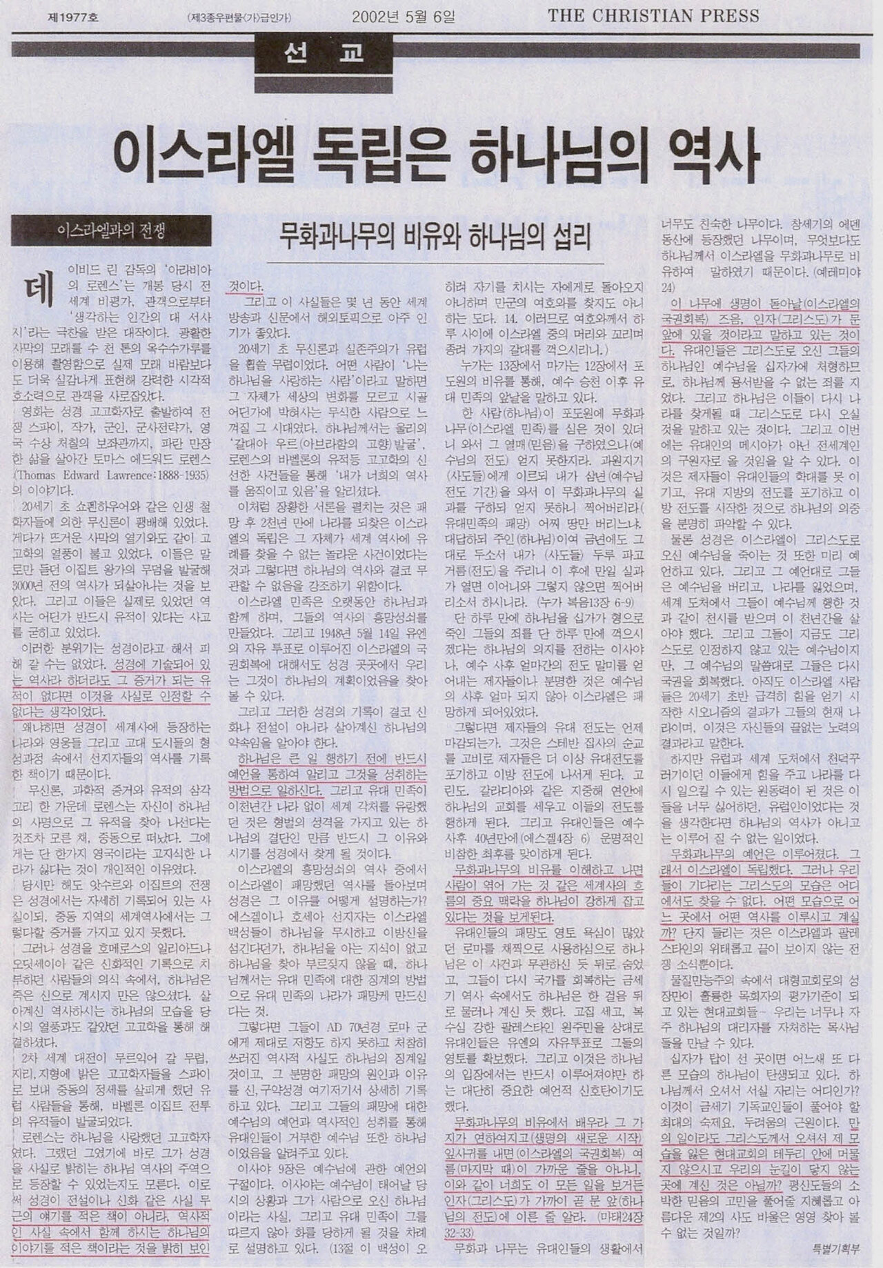 제1977호 2002년 5월 6일 THE CHRISTIAN PRESS 특별기획부