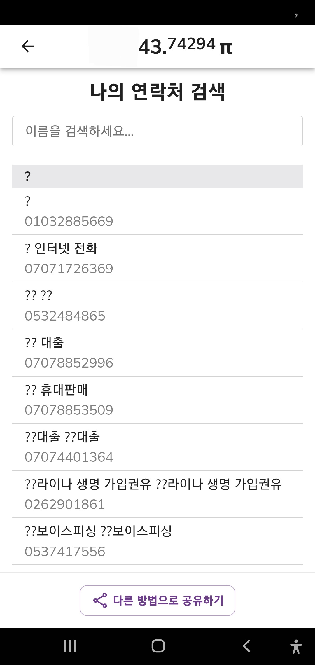 연락처에 전화번호가 너무 많으면 위처럼 뜨고 이름 옆에 아무 표시도 안 나타나며 추가하려 하면 사용자라도 추가할 수 없다는 메시지가 뜹니다.