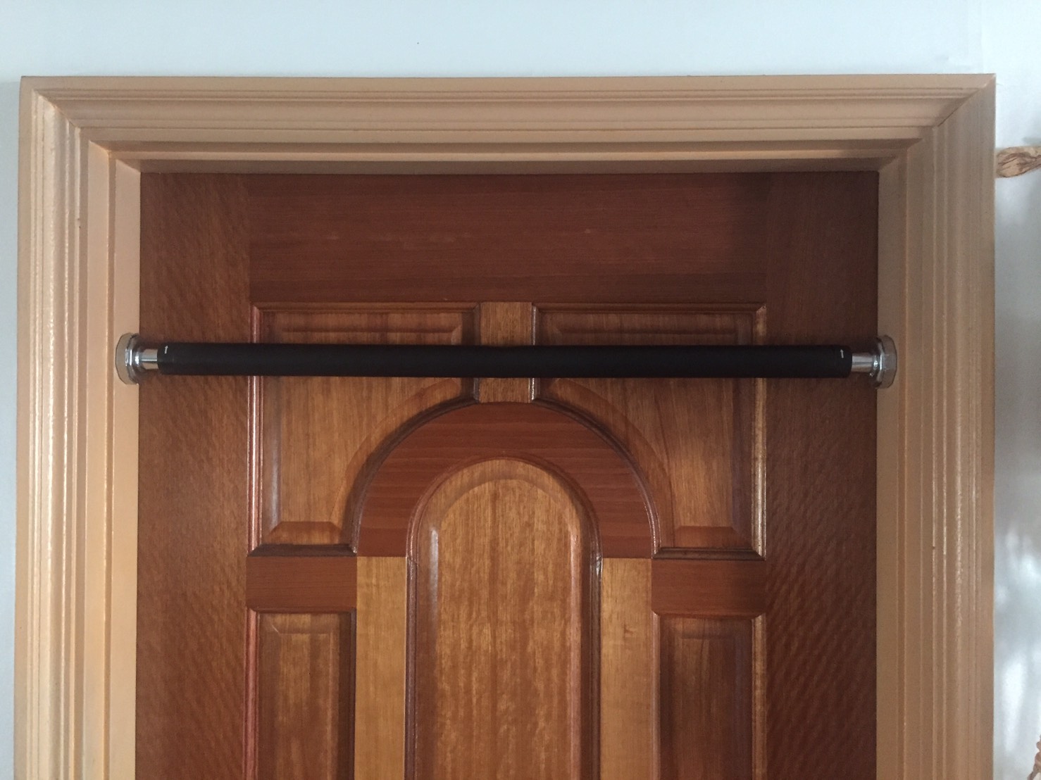 철봉 자체로 튼튼하지만 문지방이 목재라 안전캡으로 고정하였습니다.