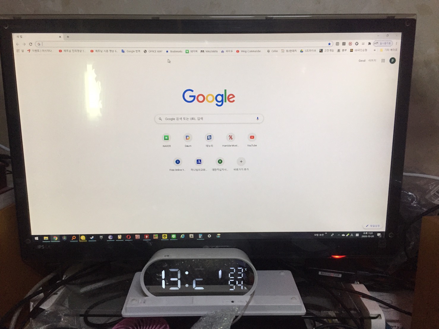 그러다가 깜박이는 시간이 점차 길어지더니 10분 넘어도 깜박이고 종종 꺼지기도 하더니 안 켜지는 고장 난 모니터였습니다.