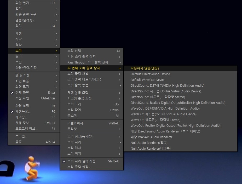 그 외에 컴퓨터의 다음팟플레이어에서는 기본적으로 두개의 스피커를 지원합니다.